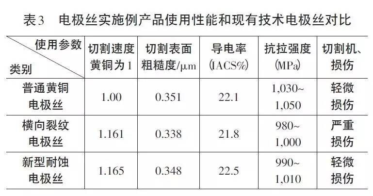 綜上所述,電極絲的導(dǎo)電率有所提高,且切割出來料件的粗糙度值同同種類型的線對(duì)比線接近;力學(xué)性能稍低,但在電極絲性能正常范圍內(nèi),不影響使用;從對(duì)比可看出:同普通黃銅電極絲對(duì)切割設(shè)備的損傷一致,比橫向的電極絲要優(yōu);同時(shí),因?yàn)殡姌O絲的裂紋是同電極絲移動(dòng)方向一致的,便于自動(dòng)穿絲。